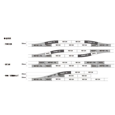 • 半径481mmで、ポイント4番(NEP481-15L/NEP481-15R)の分岐に使う補助曲線線路
