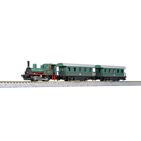 観光地で見かけそうな、シックでレトロ感のあるSL列車をイメージ 車体色は、渋いグリーンに赤色の線でデコレーション 小形コアレスモーターを使用した動力ユニットを採用。安定した走行が可能 小形レイアウトでも、ユニトラム路面軌道でも、活躍の場を選びません。