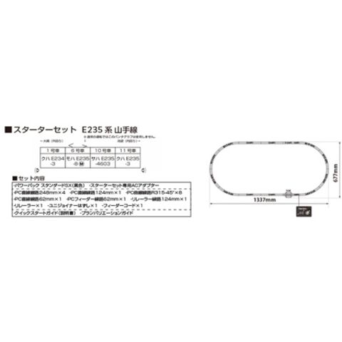 カトーの完成品Nゲージ車両と線路とパワーパックが同梱された、Nゲージスターターセット E235系山手線(PCまくらぎ仕様)です。