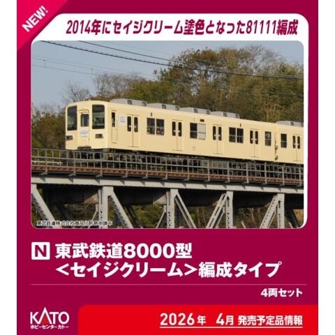 ホビーセンターカトーのNゲージ車両 完成品、東武鉄道8000型<セイジクリーム>編成タイプ 4両セットです。