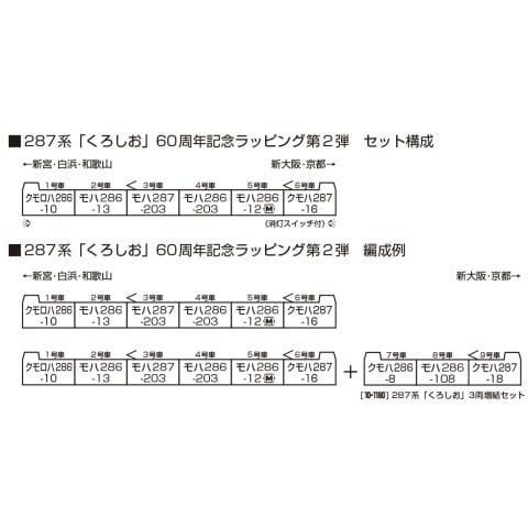 カトー (N) 10-2215 287系「くろしお」 60周年記念ラッピング 第2弾 6両セット【特別企画品】 カト- 10-2215 287ケイ クロシオ 60シュウネン ダイ2ダン 6R 【返品種別B】