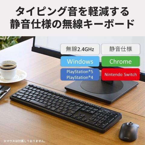 バッファロー 無線2.4GHz 静音設計 フルキーボード 日本語配列(ブラック) BSKBW340BK 【返品種別A】