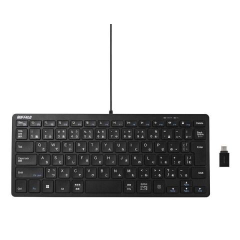 バッファロー USB接続 有線コンパクトキーボード Type-C変換アダプター付き日本語配列(ブラック) BSKBUC310BK 【返品種別A】