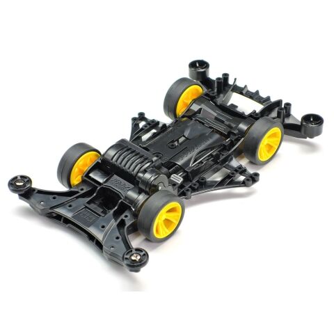シャーシはフロントモーターレイアウトのFM-Aを採用して、イエローのAスポークホイールには小径ローハイトタイヤを装着。