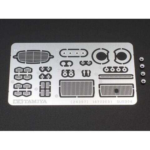 ★金属製エアファンネルや、フロントグリルなどのエッチングパーツ、さらにシートベルトをセットして完成時の見ごたえを高めます。