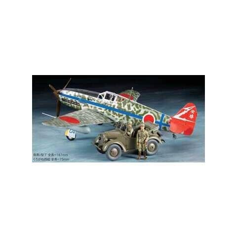 飛燕I型丁とくろがね四起をセットにした、1/48スケールのプラスチックモデル組み立てキットです。〈飛燕I型丁〉★全長187mm、全幅250mm。★延長された機首やスマートな胴体、伸びやかな主翼などI型丁の流麗なスタイルを忠実にモデル化。★倒立V型12気筒のハ40エンジンは過給機などの補機まで再現。★コクピット前方の20mm機関砲と弾倉、オイルタンクなどもパーツ化。タイトなレイアウトを実感できます。★冷却器前方の整流板の形状も実機そのまま。★風防は開閉の状態を選んで組み立てられます。★落下タンク2個と着座姿勢のパイロットの人形1体、第244戦隊小林隊長機と高島少尉機のマーキングを用意。〈くろがね四起〉★全長75mm。★丸みのある個性的なスタイルを高い実感でモデル化。★3座席の室内や四輪駆動の足まわり、大径タイヤも少ないパーツで立体感あふれる仕上がり。★幌は展開した状態と折りたたんだ状態を選べます。★フロントグリルに付く星マークはインレットマークとデカールを組み合わせて再現。★立ち姿の士官と運転手の人形をセット。
