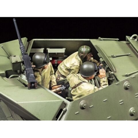 アメリカ軍、M10駆逐戦車のプラスチックモデル組み立てキットです。 1/35スケール、全長196mm、全幅88mm。 大型ボルト付きの傾斜装甲で構成された武骨な姿を、実車取材に基づきリアルにモデル化。 オープントップの砲塔は3インチ砲の装填部や照準器、砲弾ラックなど戦闘室内部を立体感豊かに再現。 車体前部や防盾の鋳造模様、車体上部や砲塔の溶接模様も繊細なモールドで表現しました。 開閉選択式のドライバーズハッチにはペリスコープもパーツ化。 角形ゴムパッド付きのT51型履帯はリアルで手軽なベルト式を採用。 オープントップの砲塔に収まる人形は戦闘中の緊張感漂う3体をセット。 ヨーロッパ戦線の戦車駆逐大隊所属車のデカール2種類付き。