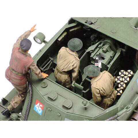 対戦車自走砲アーチャーのプラスチックモデル組み立てキットです。 1/35スケール、全長191mm、全幅78mm。 入念な実車取材に基づいて、姿勢の低い車体に長砲身の主砲を搭載した精悍な姿を実感豊かにモデル化。 バレンタインをベースに延長された車体は、装甲板の接合部分の溶接模様までリアルに再現しました。 主砲は迫力あふれるフォルムや砲尾部分なども繊細なディテールで表現。 オープントップの戦闘室内部も砲弾ラックや車載機銃など多彩な装備品で立体感十分。 目標を指示するコマンダー、射撃準備をするガンナー、砲弾を手にするローダーの人形3体をセット。 カナダ軍とイギリス軍所属車のデカール2種類付き。