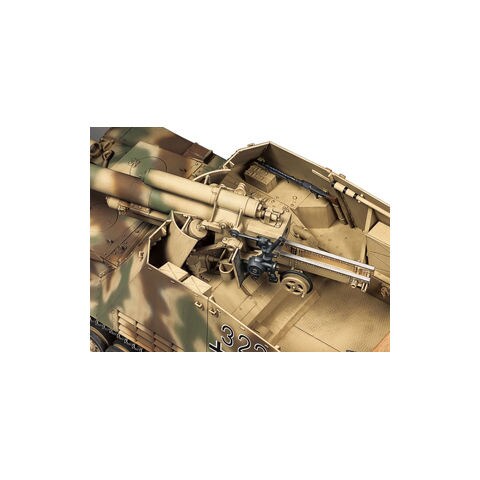 • III号/IV号系自走砲専用車台に大口径15cm重榴弾砲を搭載した迫力ある姿を再現。