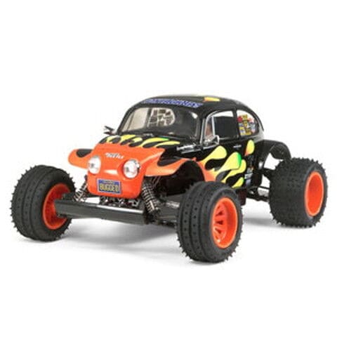 砂漠を舞台にしたオフロードレースに参戦する「バハバグ」と呼ばれるフォルクスワーゲン・ビートルのカスタムボディと大径タイヤが迫力の電動ラジオコントロールカー組み立てキットです。