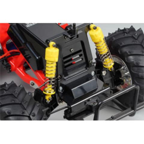 フロント・ダブルウィッシュボーン、リヤ・トレーリングアームの4輪独立サスペンションにはショック吸収性にすぐれたCVAオイルダンパーを装着。砂やホコリからRCメカを守る大型の防塵カバー付き。ドライブシャフトはパワーをロスなく後輪に伝え脱落の心配がないアッセンブリーユニバーサルシャフトを使用。