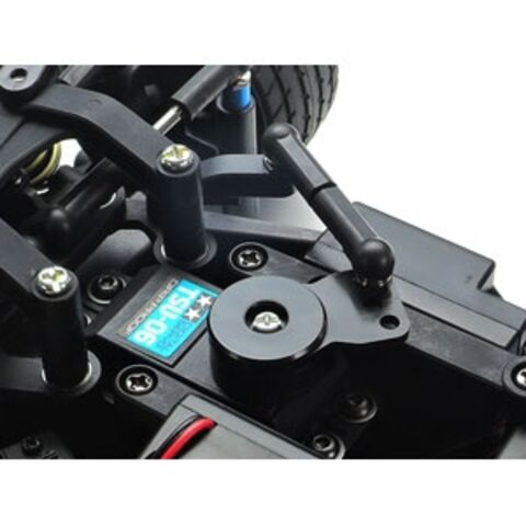 ステアリングサーボ(ロープロファイル専用)はフロント寄りに縦置き。ハイトルクサーボセイバーを標準装備。