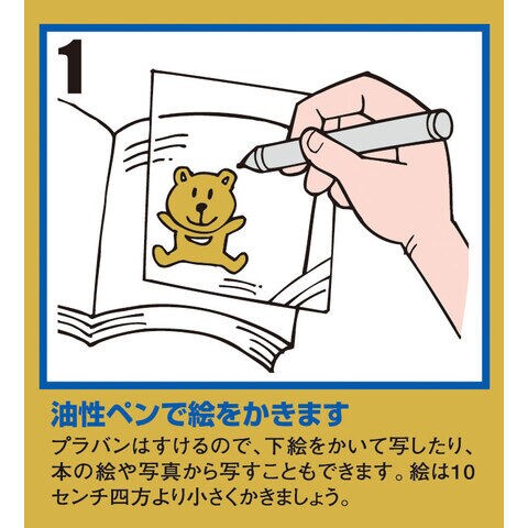 油性マジックに加えて色鉛筆も使えて、写し絵が可能なちぢむ白色プラバン。