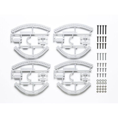 曲率の違う2種類(R50とR100)のアームをそれぞれ4本ずつ、さらに取り付け用のスペーサーやプラナット、ネジ、ワッシャーなどもセット