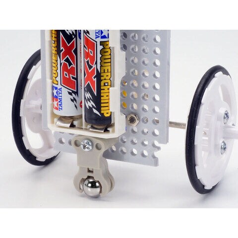 ボールキャスターはガイドローラーとしても機能し、ミニ四駆コースの走行もOK。低重心を活かした走りに注目です。