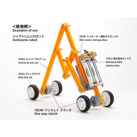 しゃくとり虫が進むように、往復運動から前進する動きだけを取り出したり、往復運動を一方向の回転運動に変えることができます。