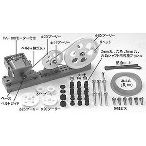 プーリーを組み合わせて、モーターのパワーを動きに変えるユニットの組み立てキットです。