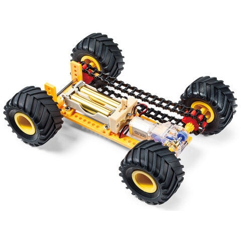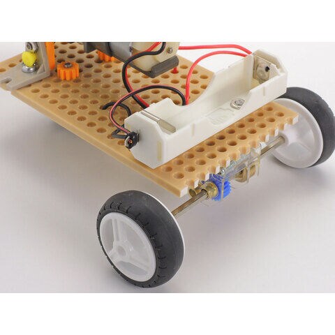 8角形の電池ボックスは工作にあわせて1本、または2本を自由に配置でき、直列接続、並列接続のどちらも選べます。