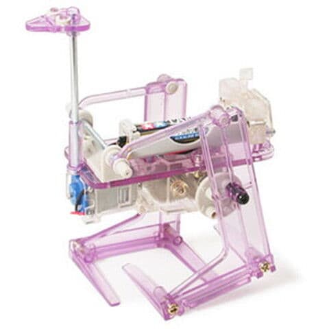 長い足で2足歩行するダチョウをモデルにしたロボットの工作セットです。モーターの回転運動をギヤボックスで減速し、クランクプレートを使って足に動きを伝えます。本体やギヤボックスなどはクリヤー系パーツ。ビス止めとはめ込みで手軽に組み立てられ、ゴムパイプを使った簡単な作業で配線もOKです。