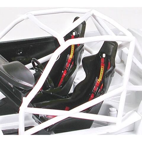 スケール1/24、全長177mm、全幅81mm。 ビス止めされたオーバーフェンダーやリヤウイングなどを装備した迫力のフォルムをリアルに再現。 ロールケージを張り巡らしたスパルタンな室内も立体感十分な仕上がり。 ホイール、ヘッドライトリフレクター、サイドミラーはメッキパーツ。 タイヤは質感あるソリッドゴム製。