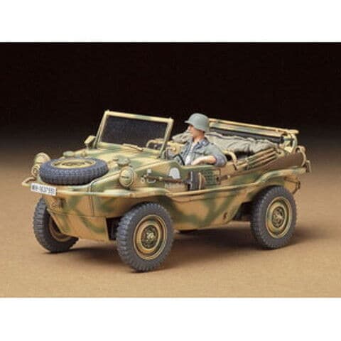 優れた悪路走破性と水上走行能力により、多くのドイツ軍将兵の信頼を集めた水陸両用4輪駆動車シュビムワーゲンのプラスチックモデル組み立てキットです。