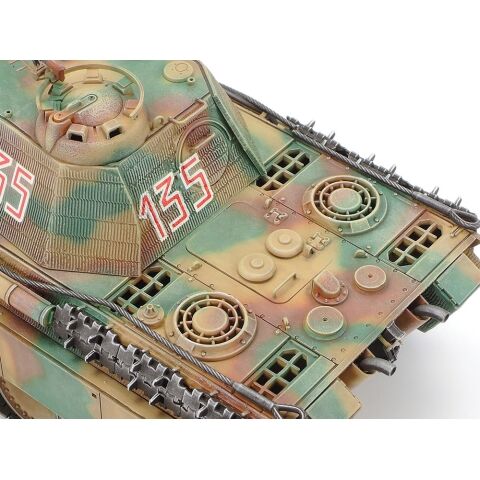 車長用ハッチやエンジン点検用ハッチは別パーツで開閉選択式。砲塔後部のエスケープハッチは可動式。エンジングリルには別売のパンサーG型・エッチンググリルセットが使用可能。