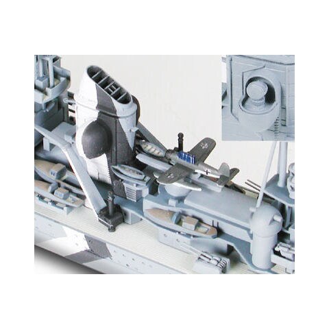 ドイツ重巡洋艦プリンツ・オイゲンのプラスチックモデル組み立てキットです。 機能美に満ちたスタイルをリアルにモデル化。1941年の「ライン演習作戦」と、5基の20mm4連装機銃を増設した1942年の「チャンネル・ダッシュ」当時の姿を選んで組み立てられます。 艦体は左右分割として舷側の微妙なラインもリアルに再現。兵装類や探照灯、艦載機など細部もシャープな仕上がりです。
