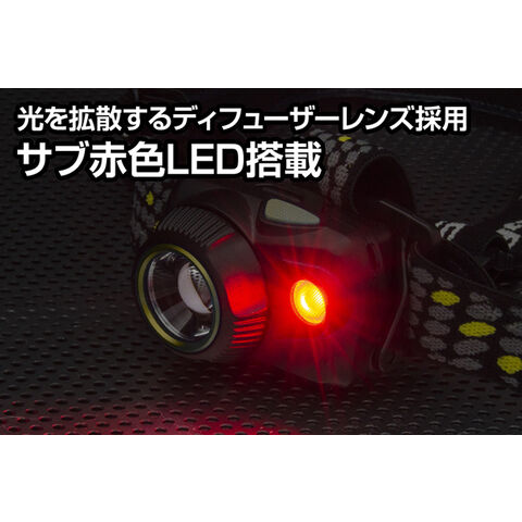 • 点灯時間(約):6時間(Highモード)/ 10時間(Midモード)/ 40時間(Ecoモード)/ 19時間(サブ赤色LED点灯)/ 40時間(サブ赤色LED点滅)