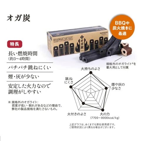 ◆一般的なBBQ用の木炭の数倍長持ちするのでお得!