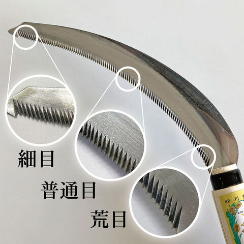 ◆先端は野菜収穫・やわらかい草刈用の細目。