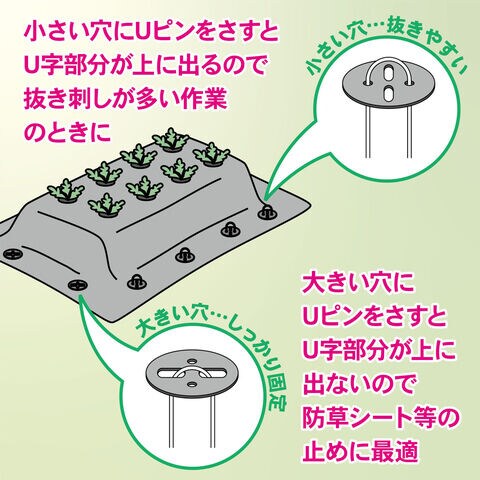 ◆地中で広がり固定するUピン押さえ杭。