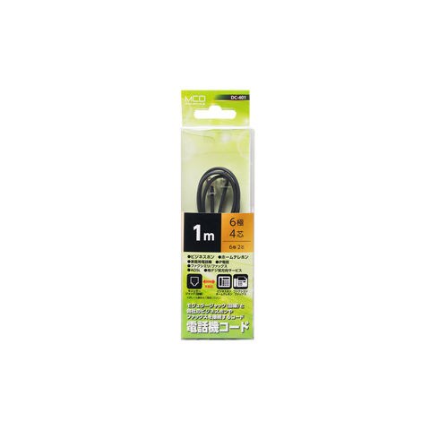 MCO 6極4芯 電話機コード 1m(ブラック) ミヨシ DC-401/BK 【返品種別A】