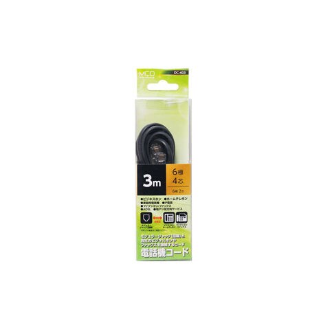 MCO 6極4芯 電話機コード 3m(ブラック) ミヨシ DC-403/BK 【返品種別A】