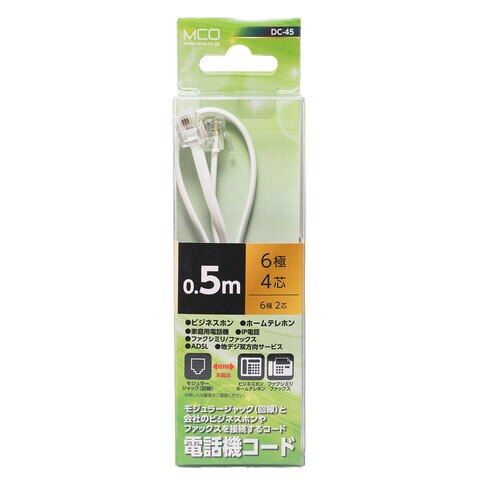 MCO 6極4芯 電話機コード 0.5m(ホワイト) ミヨシ DC-45/WH 【返品種別A】
