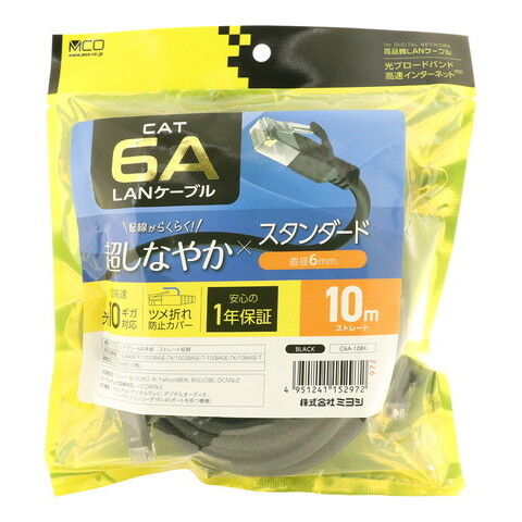 MCO スタンダードLANケーブル カテゴリー6A対応 10m(ブラック) C6A-10BK 【返品種別A】