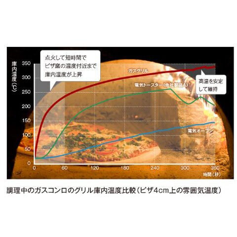 ガスコンロのグリルは庫内の温度上昇スピードが速いうえ、高温を安定して維持できます。