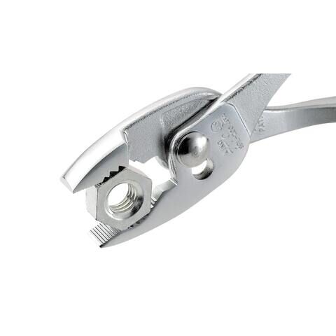 ◆薄型ヘッドと非対称ノコ刃により、狭いエンジンルームでも使いやすく、どんな形の部品でもガッチリ挟んで離しません。