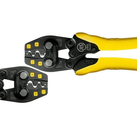 ◆第二種電気工事士技能試験では、JIS適合品で黄色グリップの圧着工具が指定工具と定められているため必須工具です。