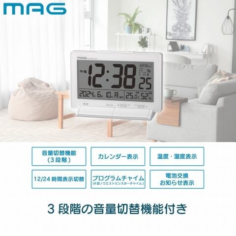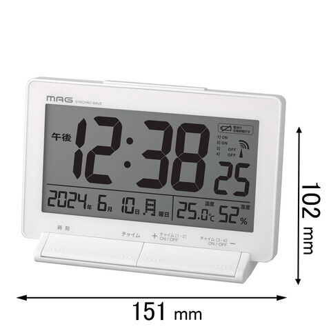 時計 目覚まし時計 ノア精密 電波目覚まし時計 MAG デジタル電波置時計 タイムチャイム T-792WH-Z 【返品種別A】