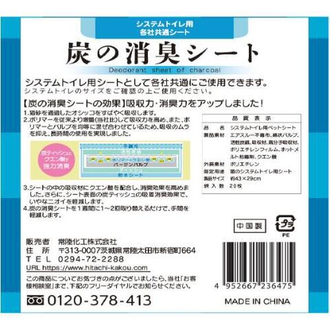 常陸化工 ファインキャット システムトイレ用 炭の消臭シート 20枚入 フアインスミノシヨウシユウシ-ト20マイ 【返品種別A】