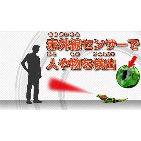 リザードロイドは、人や物を検出する赤外線センサー搭載のエリマキトカゲ型ロボットです。