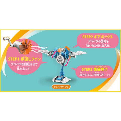 ウィンドウイング、ウィンドドリル、ウィンドウォーカー、ウィンドバイク、ウィンドロボ、ウィンドヨットの6タイプに組み替えて、色々な動きを楽しめます。