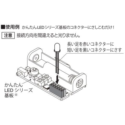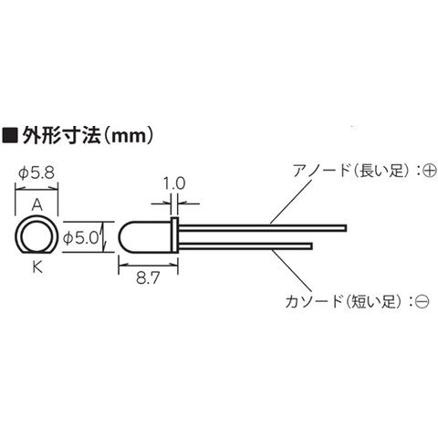 かんたんLEDシリーズ基板に直接さし込むだけで光らせることができる5mm、拡散タイプの砲弾型色LEDです。