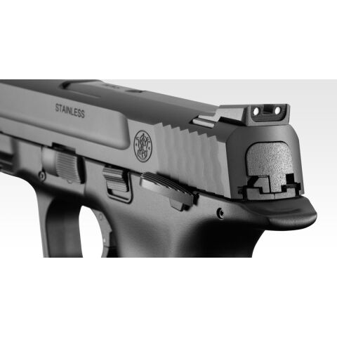 ガスブローバック「M&P 9」は、多くのバリエーションモデルが存在するM&Pの中でも、マニュアル式のサムセフティを備えた9mm口径モデルを再現。