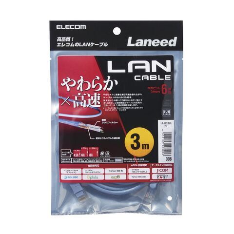 カテゴリー6準拠の「やわらかLANケーブル」です。