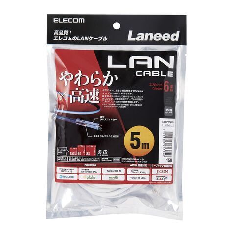 エレコム CAT6準拠 スタンダード やわらかLANケーブル(ホワイト・5m) LD-GPY/WH5 【返品種別A】
