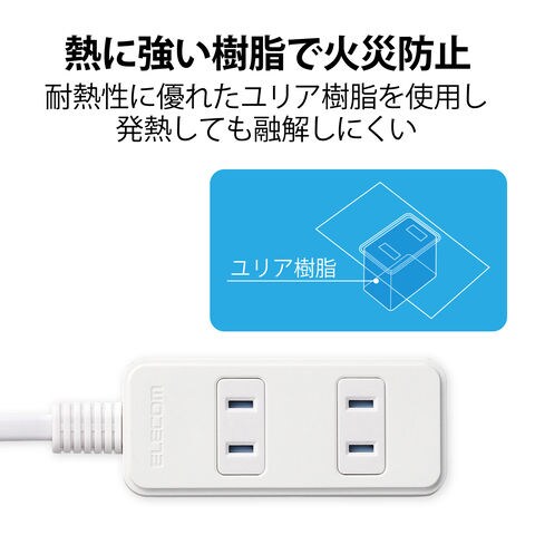 エレコム ほこりシャッター付き2ピン式スイングプラグ電源タップ 3個口 2.0m(ホワイト) T-ST02-22320WH 【返品種別A】