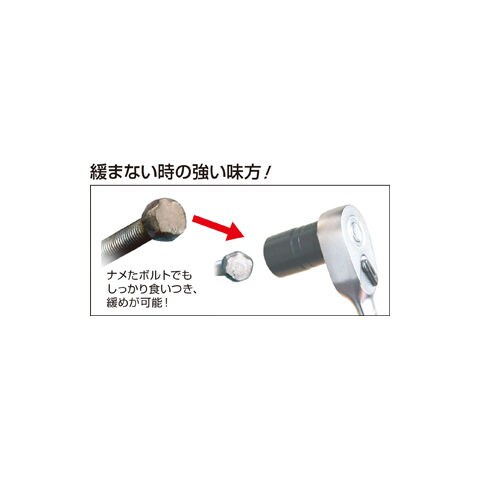 ◆ボルト・ナットの六角部がひどくナメたり、サビ付いたりしてソケットやめがねレンチでは回せない時でもしっかり喰い込み回すことができます。