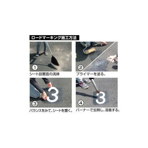 ◆ロードマーキング」は駐車場などの路面に専用のシートを設置後、バーナーで加熱し溶着させる路面標示材です。