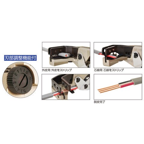 ◆調整ネジの操作でφ1.6×2芯・3芯、φ2.0×2芯・3芯をより美しく脱皮できます。
